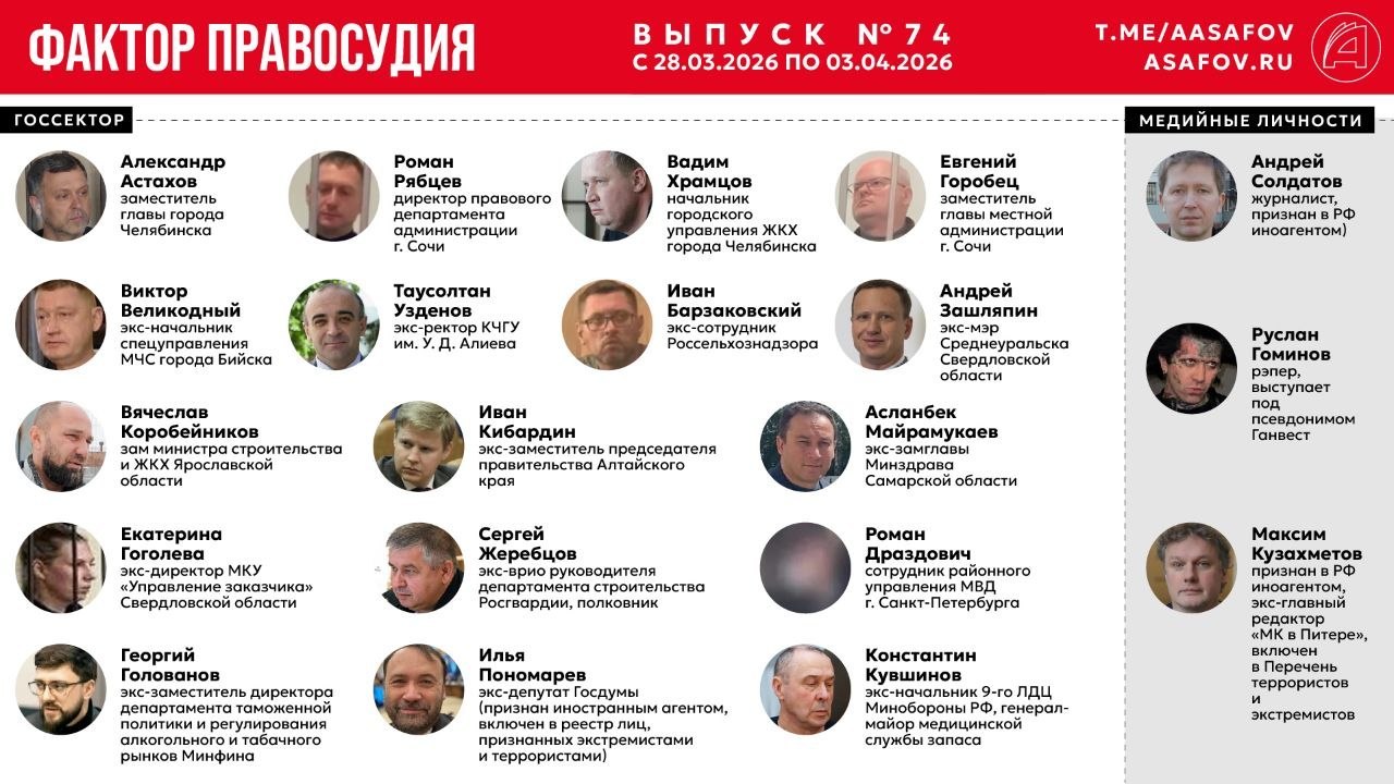 За период с 28 марта по 3 апреля 2026 года было выявлено 92 случая задержаний и судебных процессов (в т.ч. штрафы).
