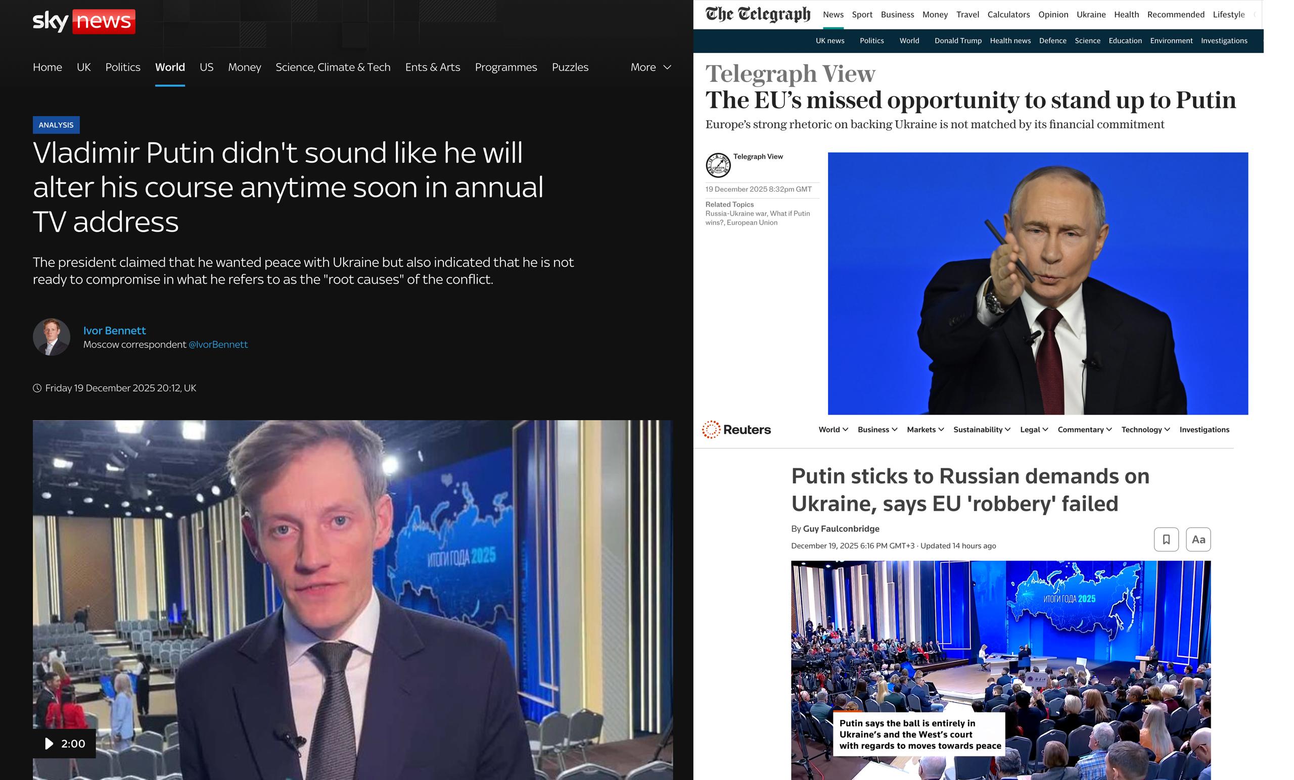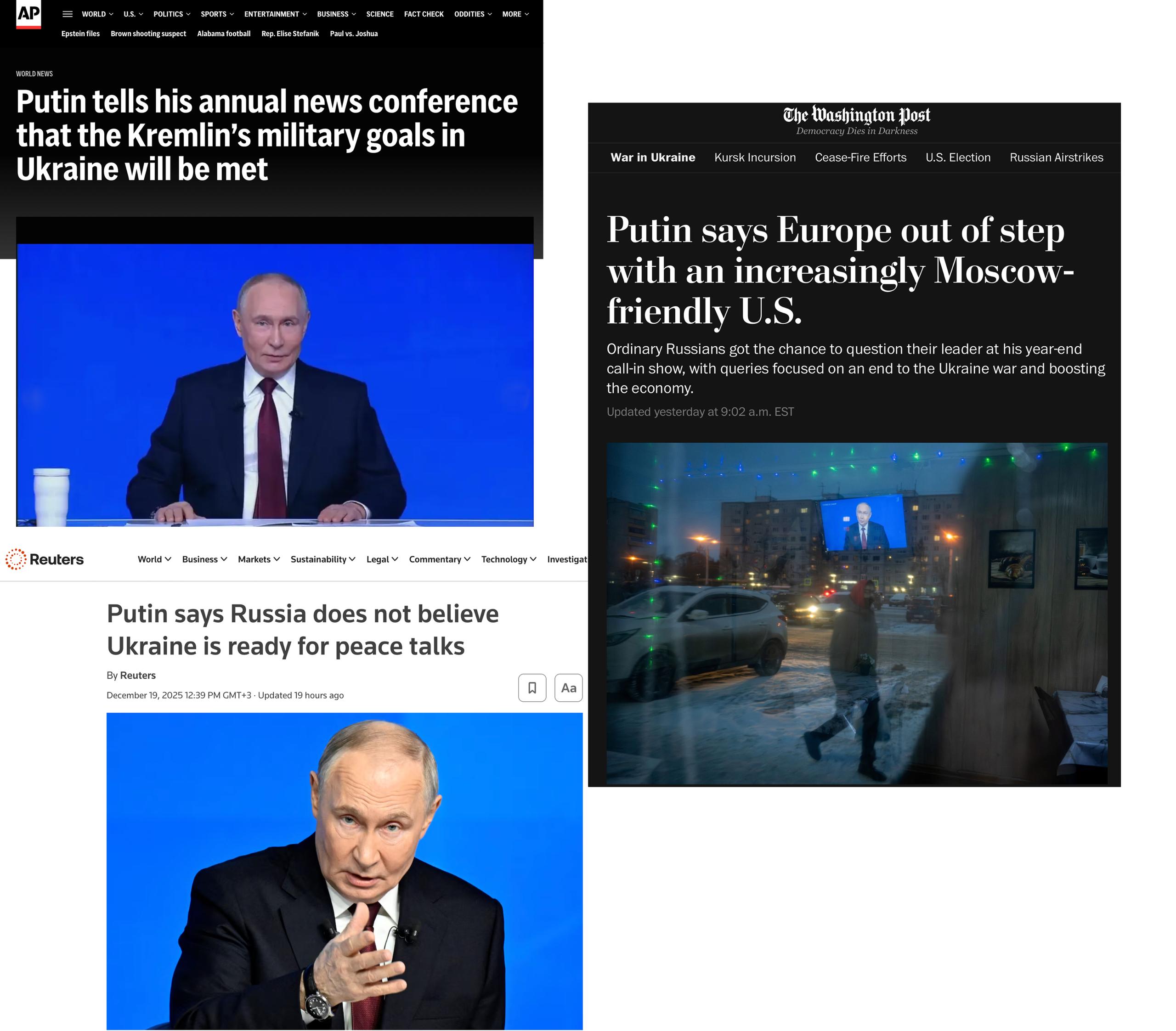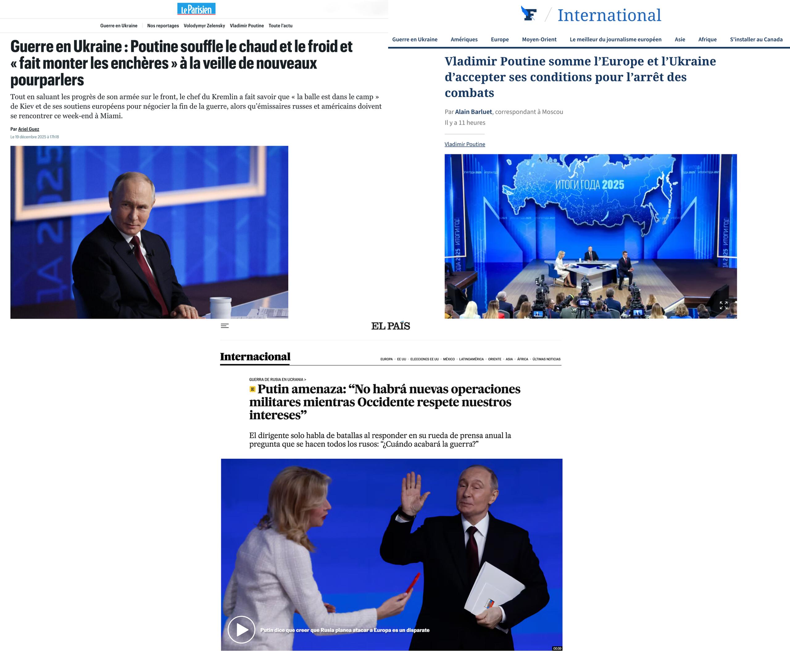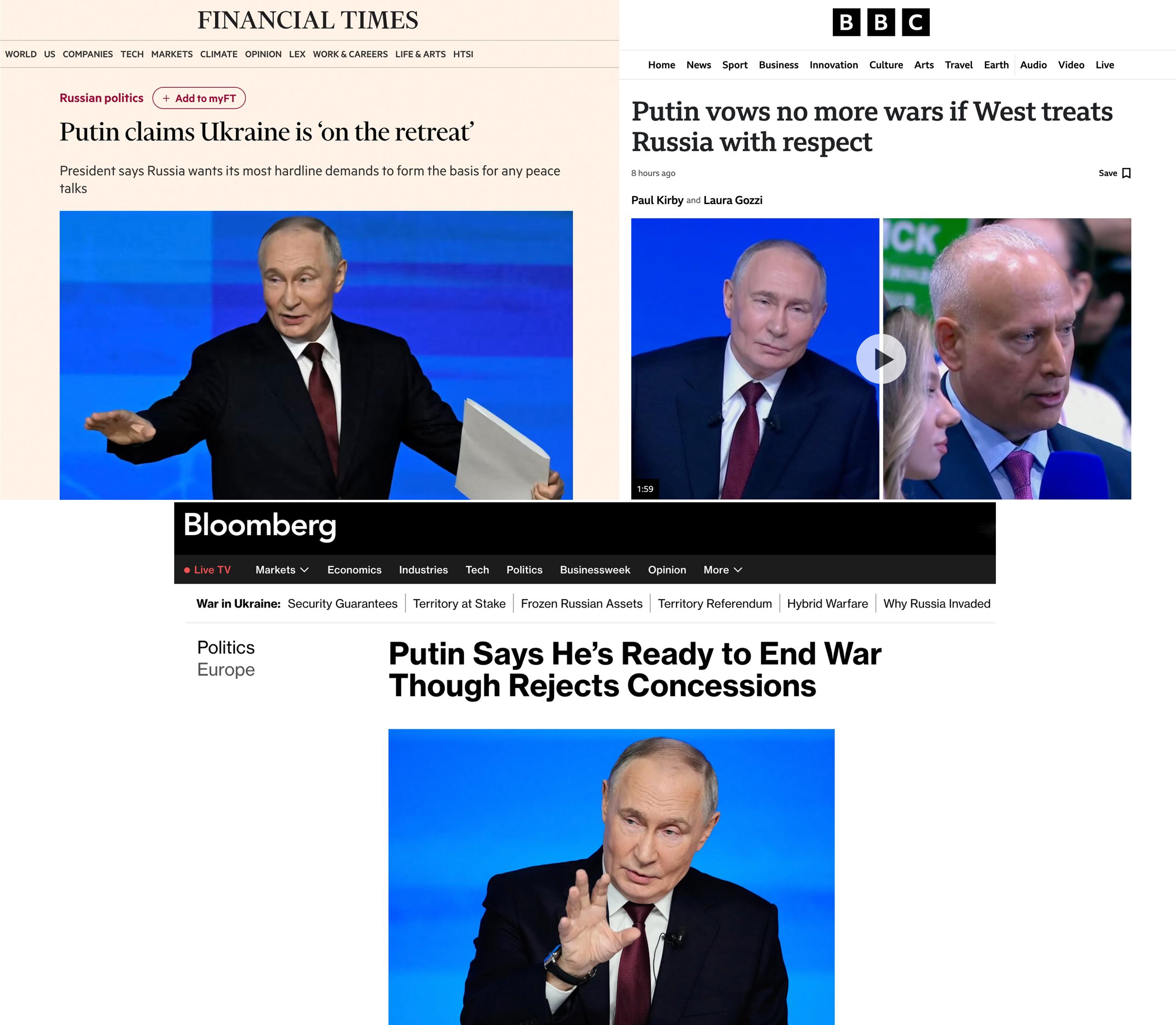 В западной оптике выступление Владимира Путина — это прежде всего набор сигналов по международной повестке и, прежде всего, украинскому урегулированию, адресованных лидерам США и ЕС: что Россия считает возможным, что считает недопустимым, и на каких условиях вообще допускает разговор о завершении конфликта.