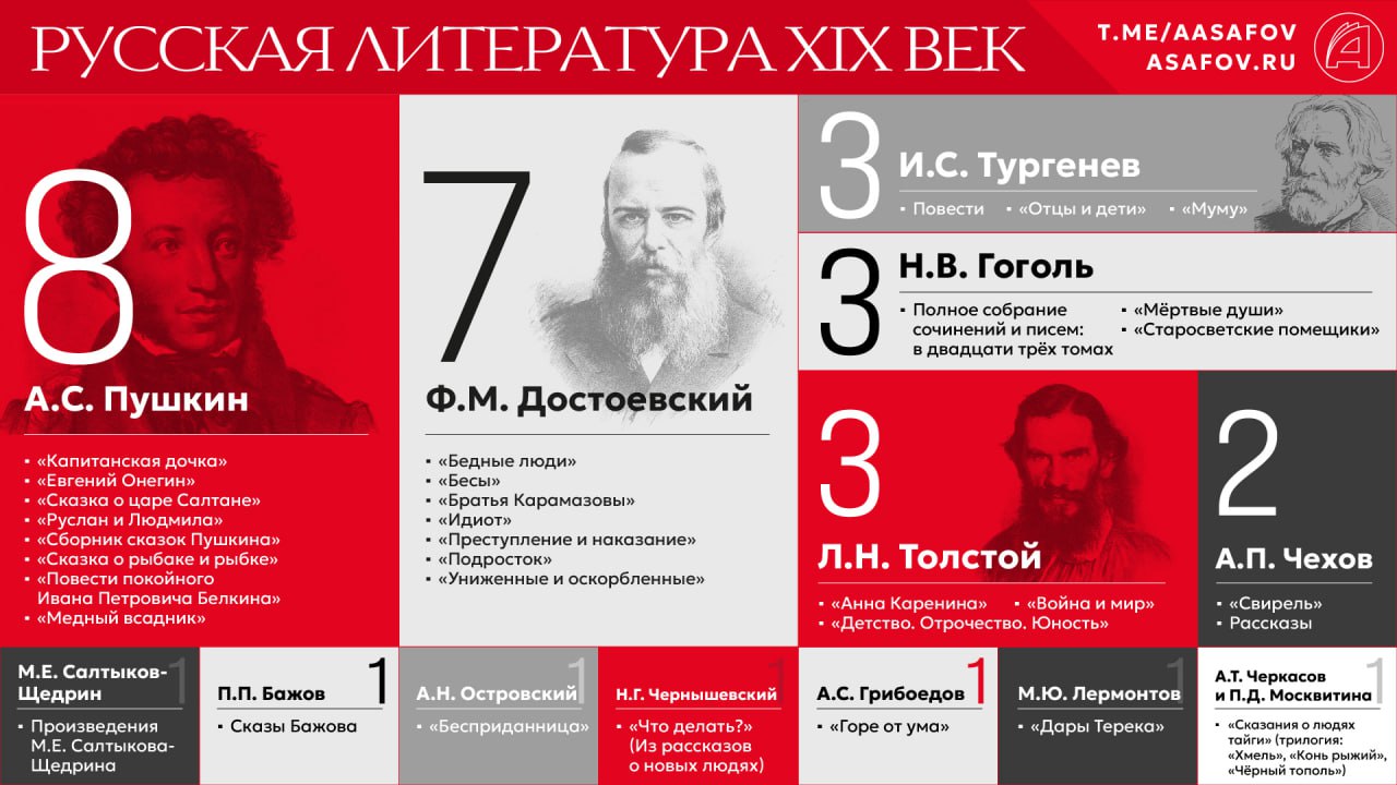 Категорию дополнили книги И.С. Тургенева и А.Н. Островского. Среди прозы Тургенева важными назвали «Отцов и детей», «Муму» и повести, а у Островского — пьесу «Бесприданница».